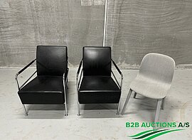 2 stk. læderstole med blankt stålstel, 1 stk. stol med stofryg og stofsæde