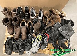 Ca. 188 par diverse støvler, ca. 175 stk. overtræksdragt, ca. 400 par sikkerhedsbriller - ubrugte og ca. 500 par brugte og ubrugte handsker