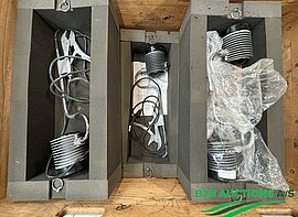 Diverse materiel: RIGA mikrobølgeovn, redningsvest og sugepumpe