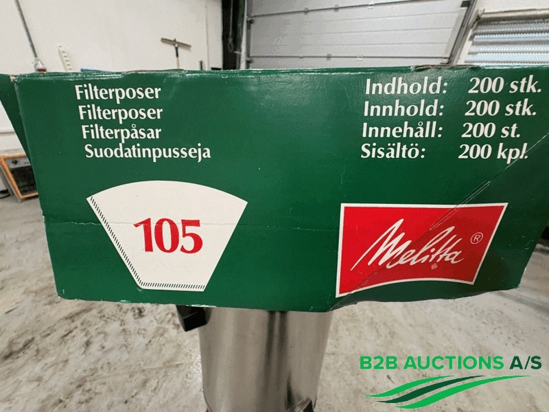 1 stk. beholder med aftapningshane til kaffebrygning, inklusive 2 stk. MELITTA 10S tragte og ukendt antal filtre.