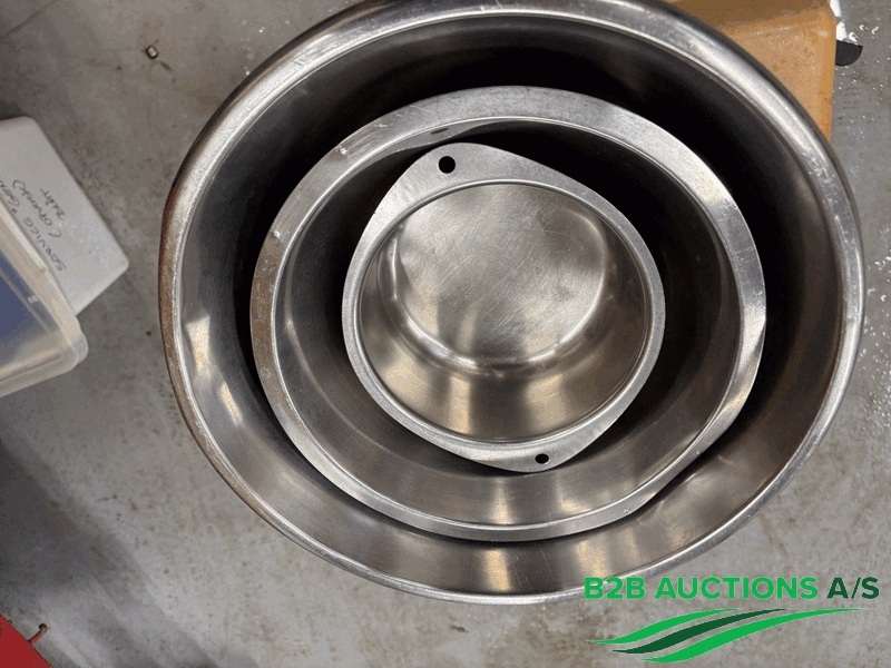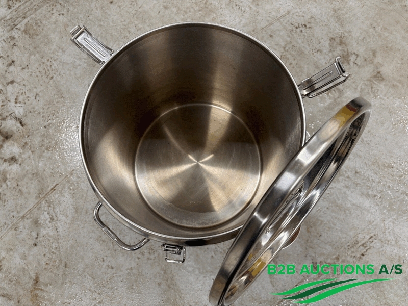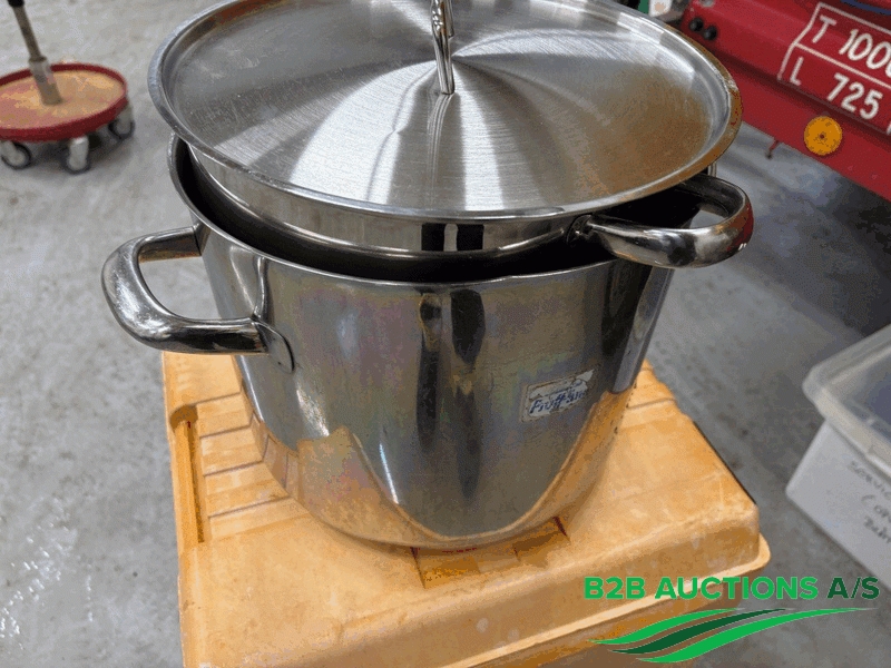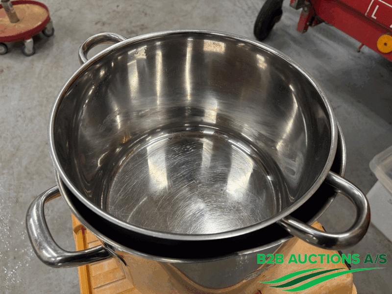Diverse rustfrie gryder, skåle og fad.