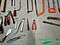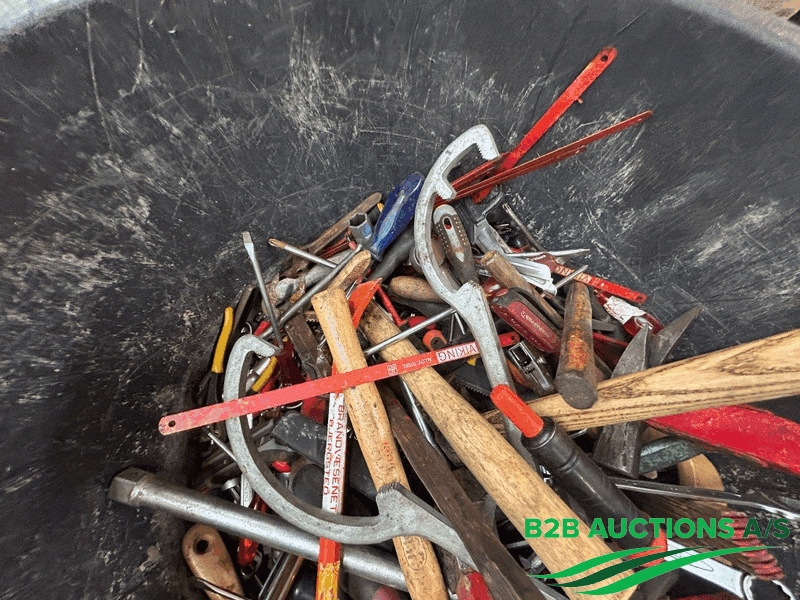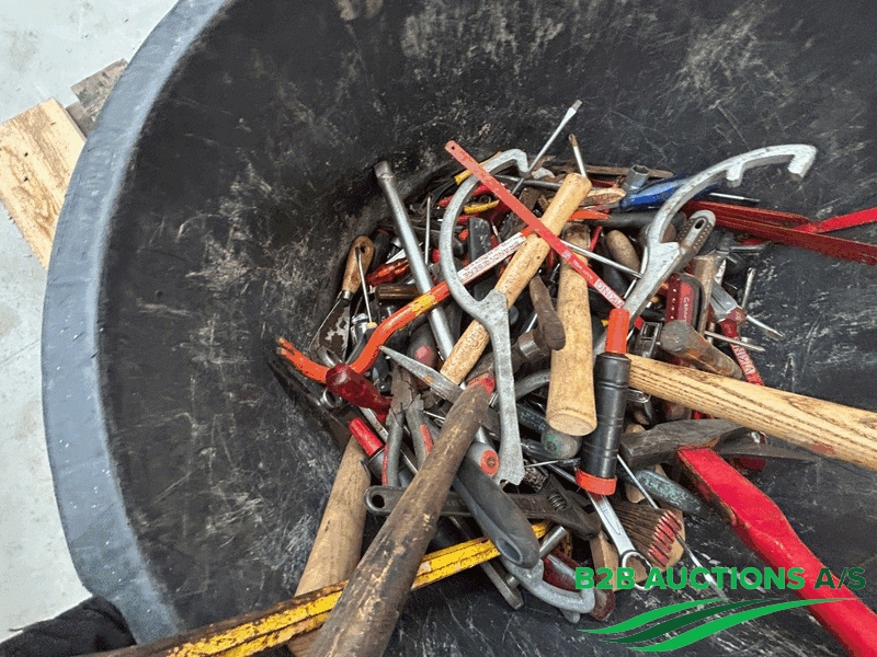 Murerbalje fyldt med blandet værktøj