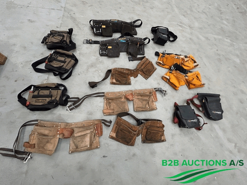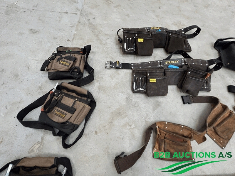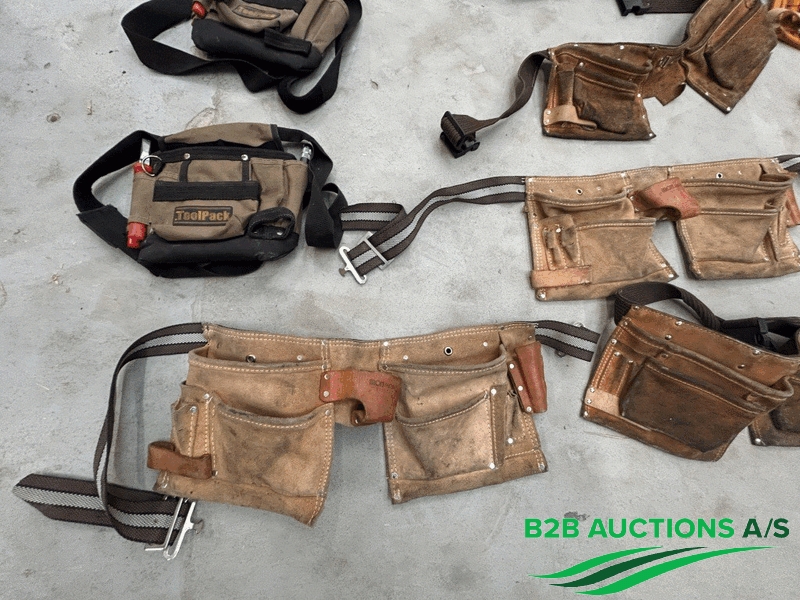 Ca. 17 stk. værktøjsbælter, indhold i nogle af dem
