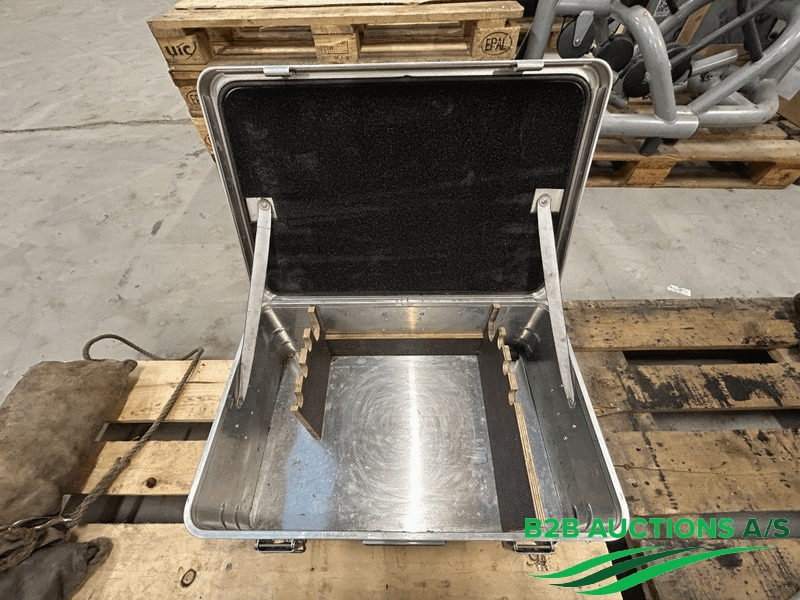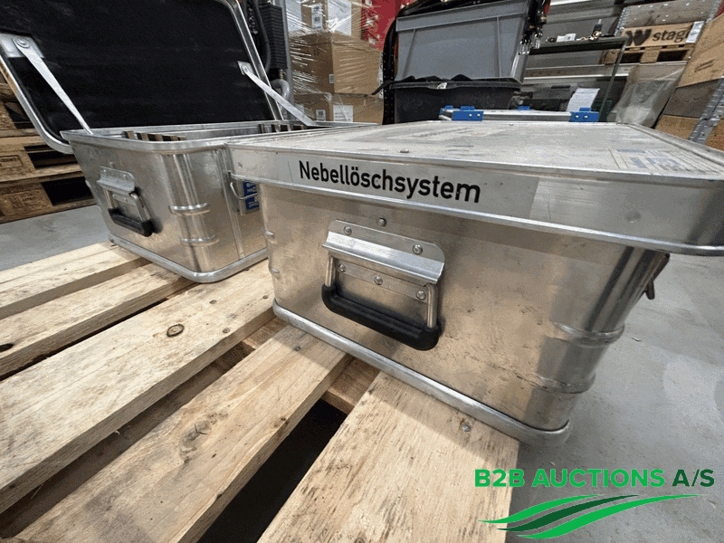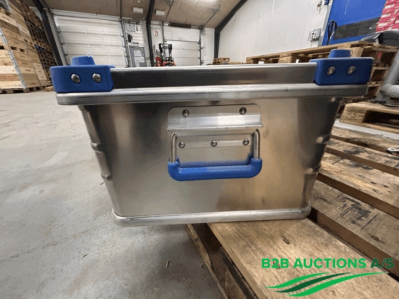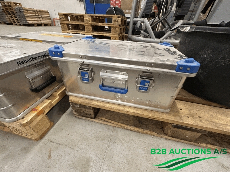 4 stk. alu-kasser ca. 60x40x23cm, 3 bærehåndtag, rumdelt.