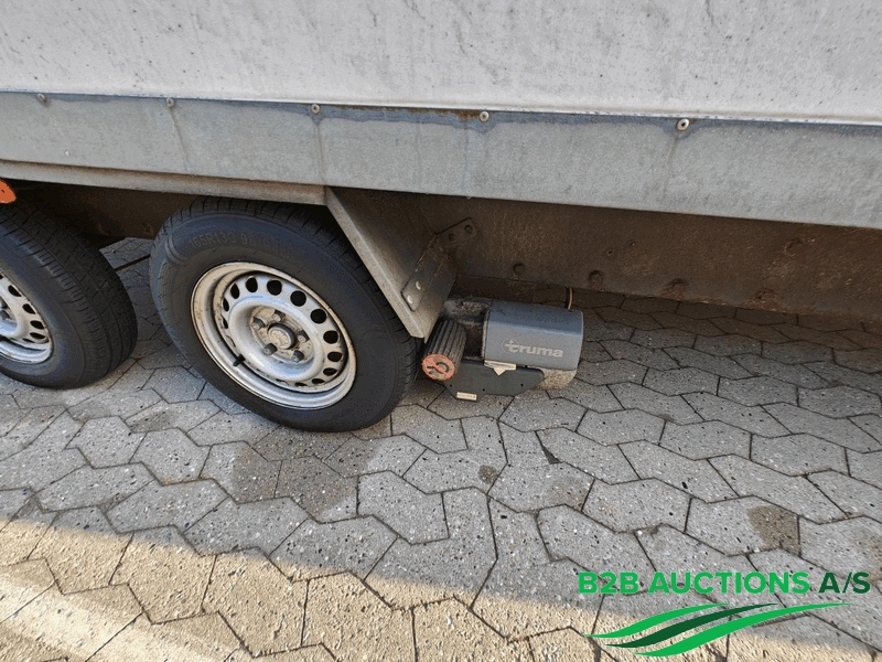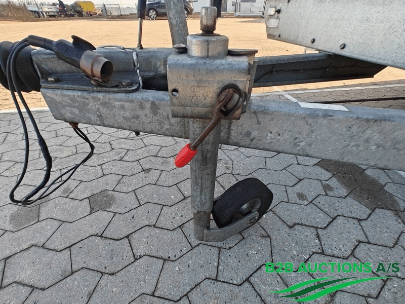 Traileren har påløbsbremse og støttehjul.