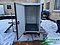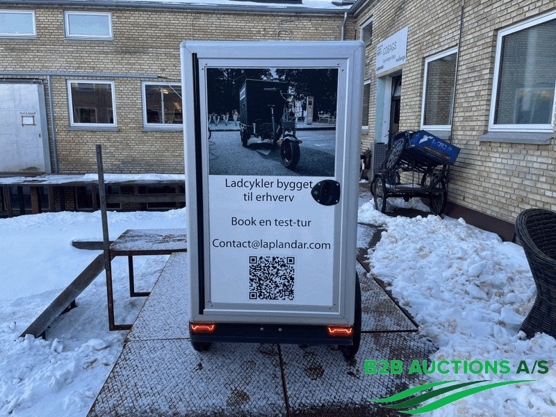 Ladcykel med mørkegråt stel og en hvid lukket kasse monteret