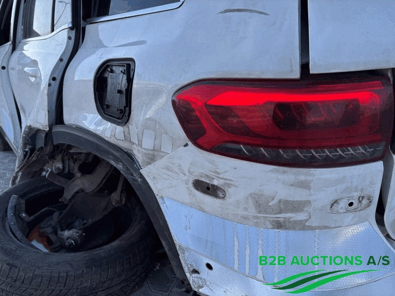 Bilen har stor skade højre bag og kan ikke køre selv.