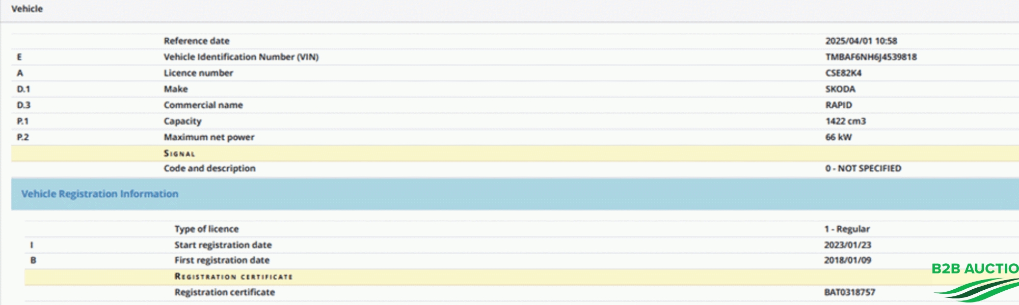 B2B Auctions A/S håndterer salget af køretøjet på vegne af sælger.