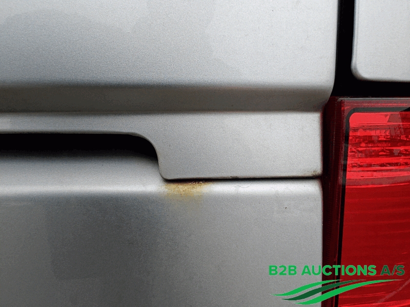Skader på højre skydedør, højre side og på bagkofangeren.