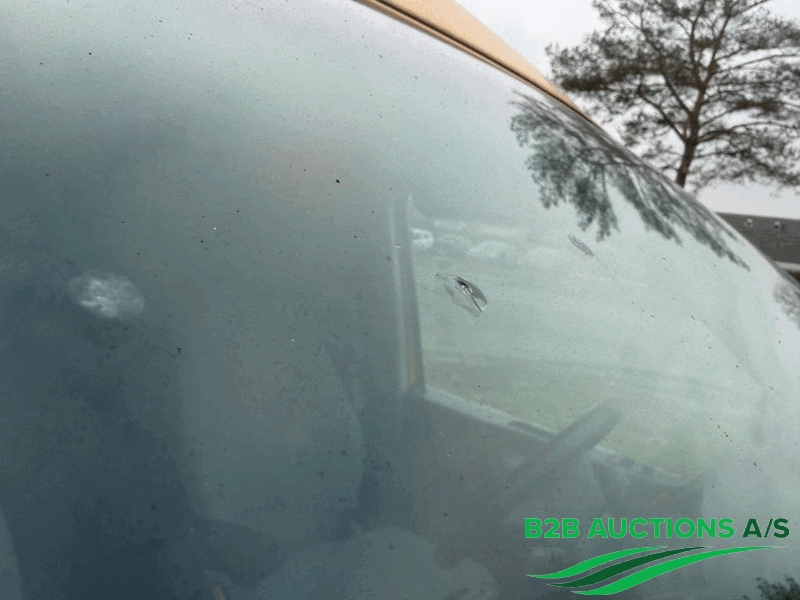 Bilen har stenslag forrude, øvrige vinduer, spejle og lygter er uden væsentlige synlige fejl.