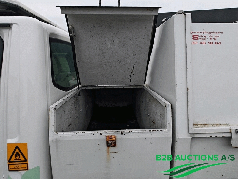 Opbygget med lukket 2 rums kasse, til renovationskørsel, bagerste rum er selvtømmende.