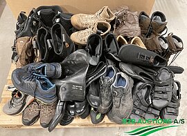 2 pallets with various shoes: boots, slippers, safety shoes, shoe covers, sandals, running shoes and others.