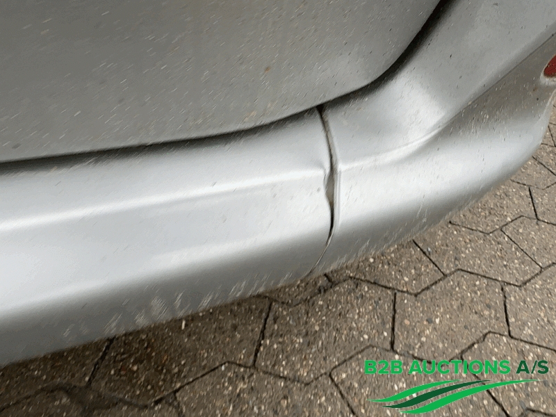 There is a dent on the rear bumper and rear door.