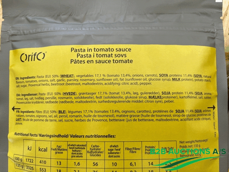 Ration 12 M/19, pasta in tomato sauce freezer.