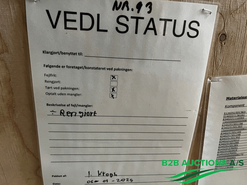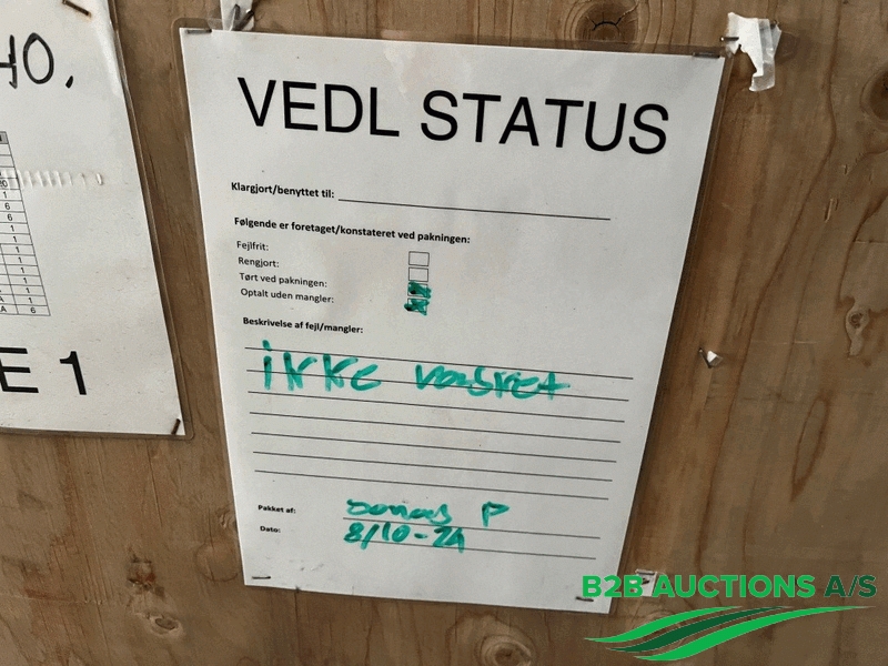 B2B Auctions A/S handle the sale of this equipment on behalf of the owner.