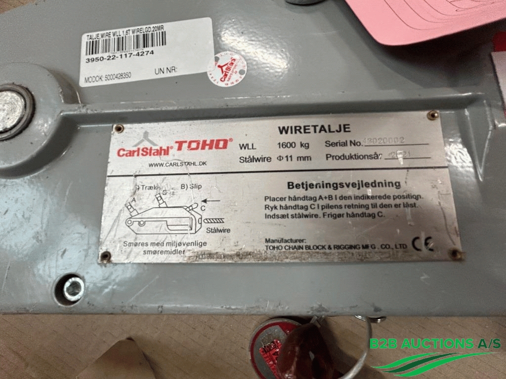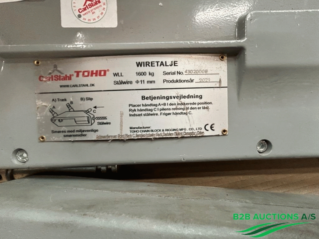 B2B Auctions A/S handle the sale of this equipment on behalf of the owner.