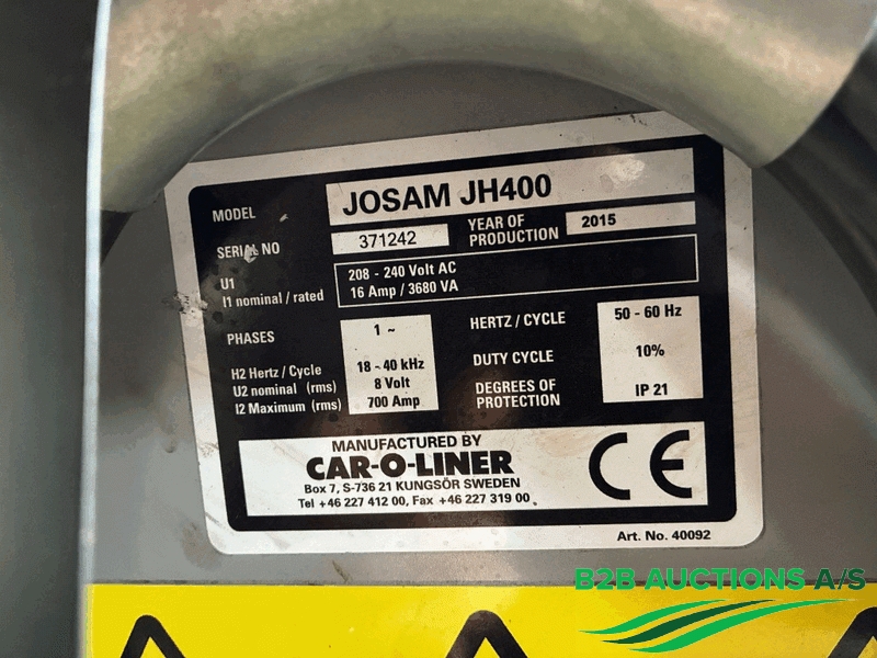B2B Auctions A/S handle the sale of this equipment on behalf of the owner.