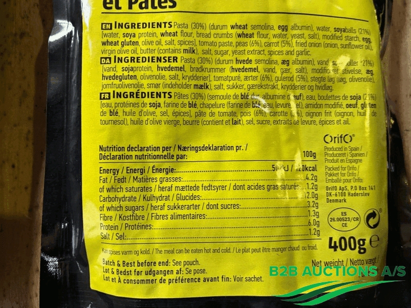 163 boxes of 22 pieces. Veggie balls with pasta