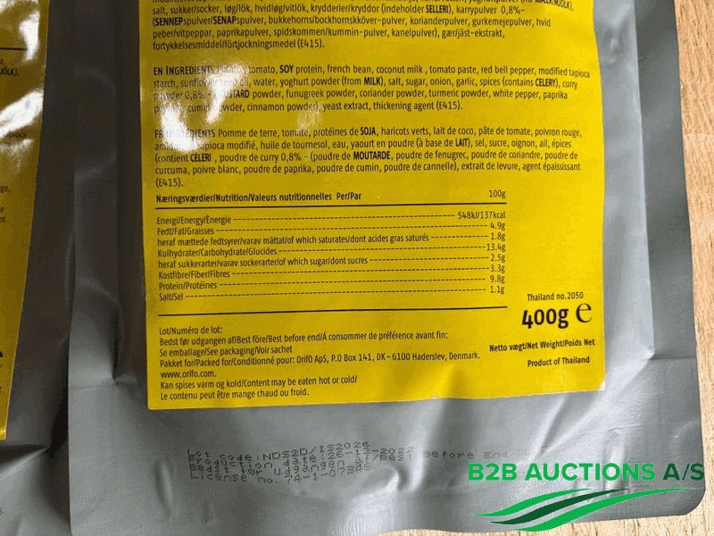 50 boxes of 16 pieces. Vegetarian Massala