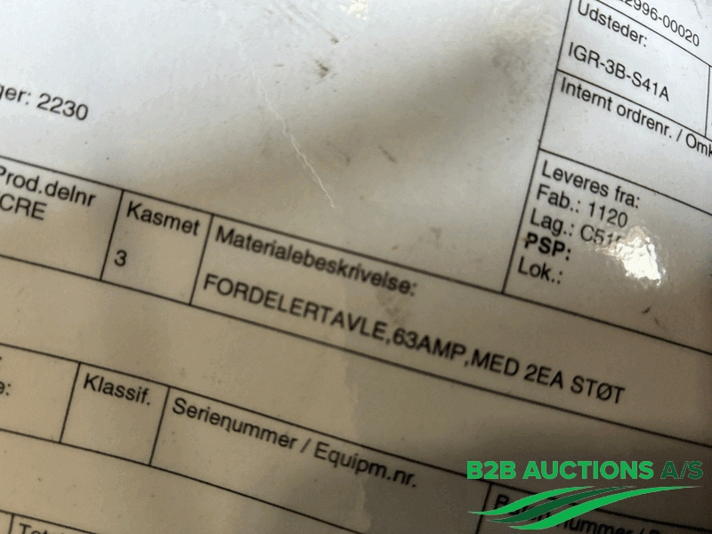 B2B Auctions A/S handle the sale of this equipment on behalf of the owner.