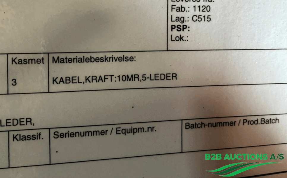 B2B Auctions A/S handle the sale of this equipment on behalf of the owner.