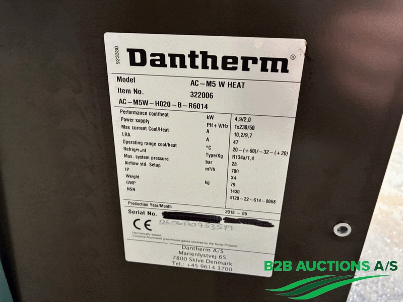 B2B Auctions A/S handle the sale of this equipment on behalf of the owner.