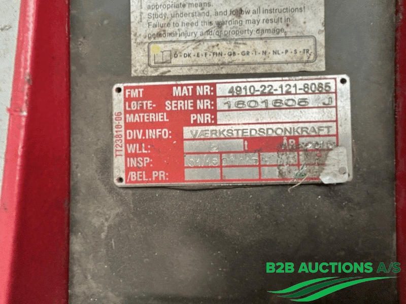 B2B Auctions A/S håndterer salget af dette materiel på vegne af ejer.