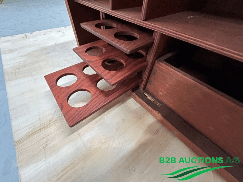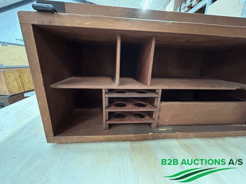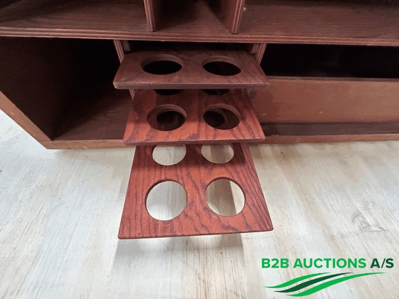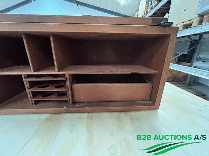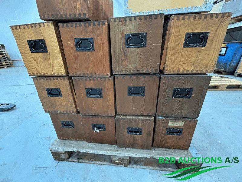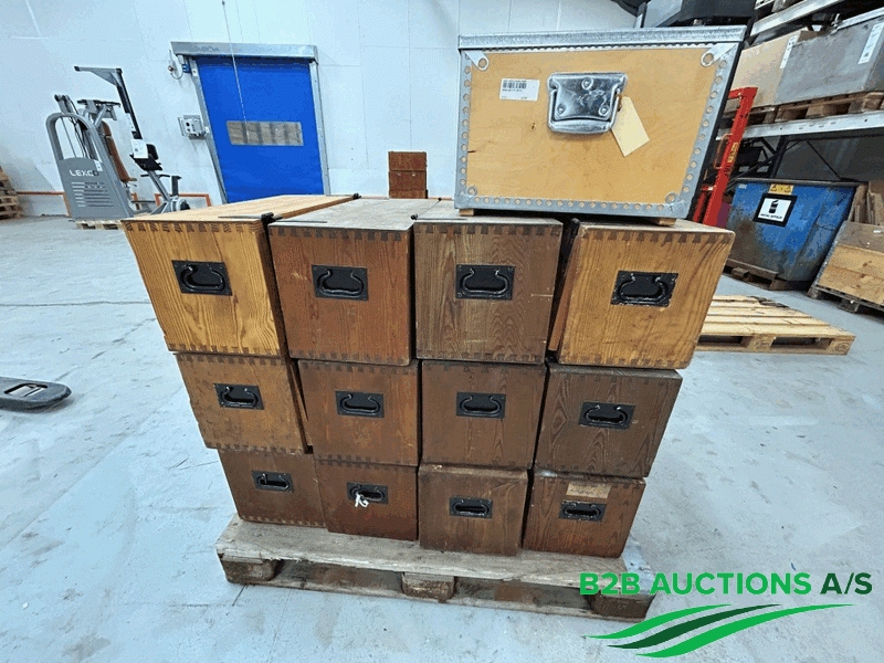 13 stk. kasser med hylder og lås.