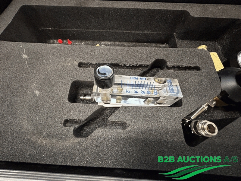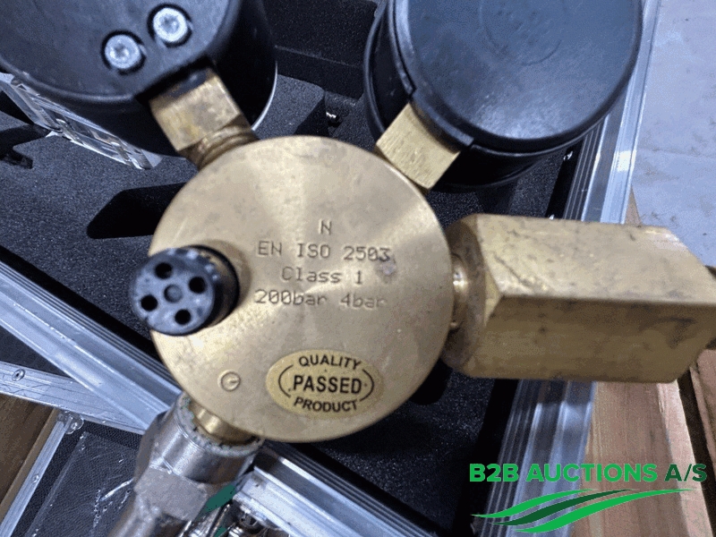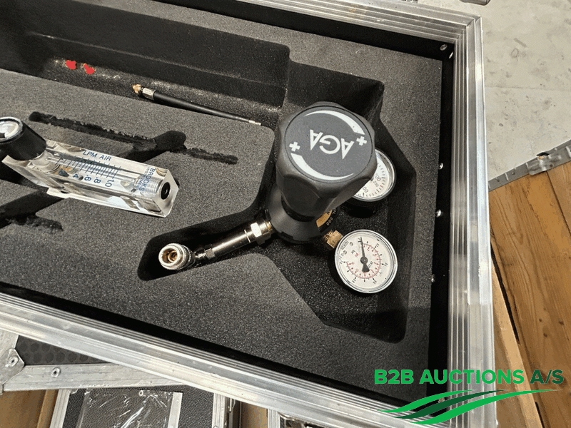 5 stk. transport kufferter, med skum, indeholder ingen flasker, indeholder slange, manometer med ventil og studs, sorte farve, størrelse: 53 x 32 x 23 cm.