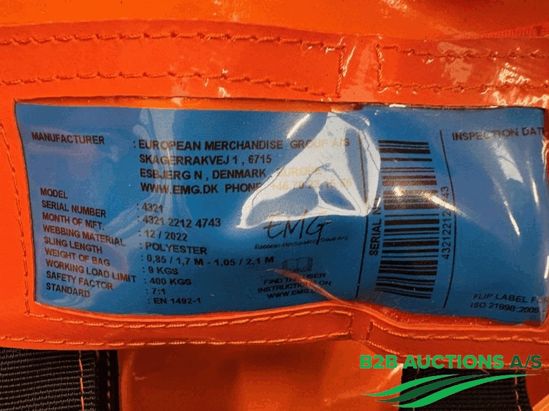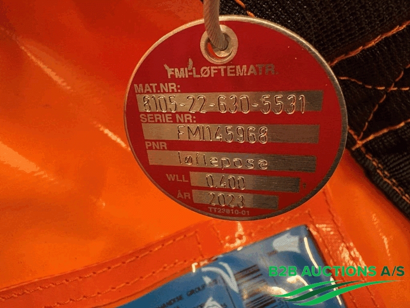1 stk. løftepose, 400 kg, 77 x 46 x 72 kg, årgang: 2023, serie nummer: 145968.