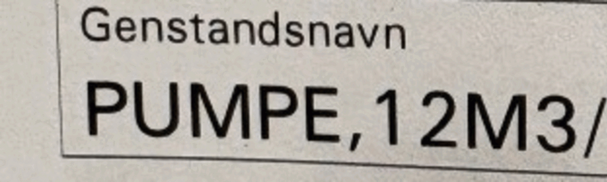 1 stk. pumpe, 12 m3/h, 3 bar, 3 KW, 3 x 400 V, 50 HZ.