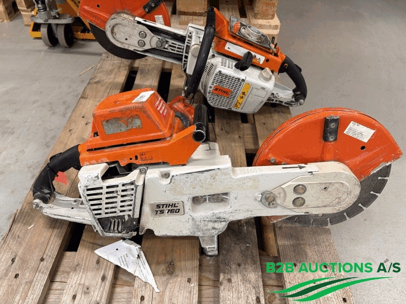 2 stk. STIHL skæremaskine, TS 760, slidt startsnor og låg knækket.