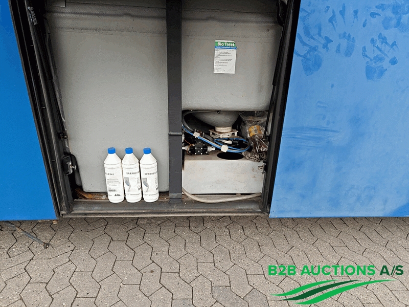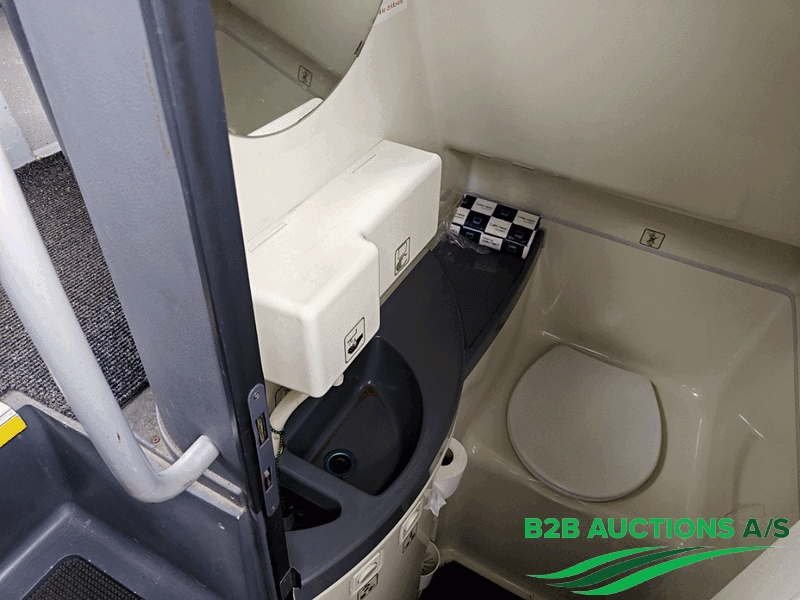 Toilet, 2 tv skærme, kæleskab ved indstigningsdør (ikke funktionstestet)