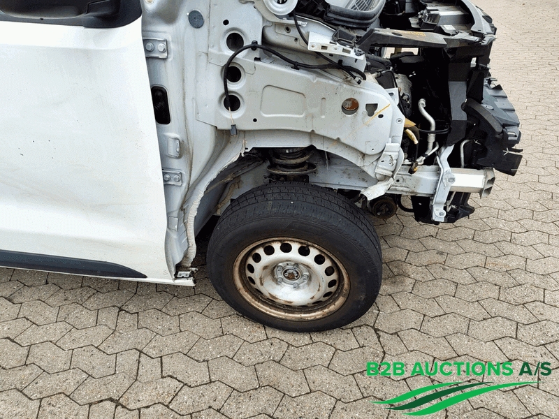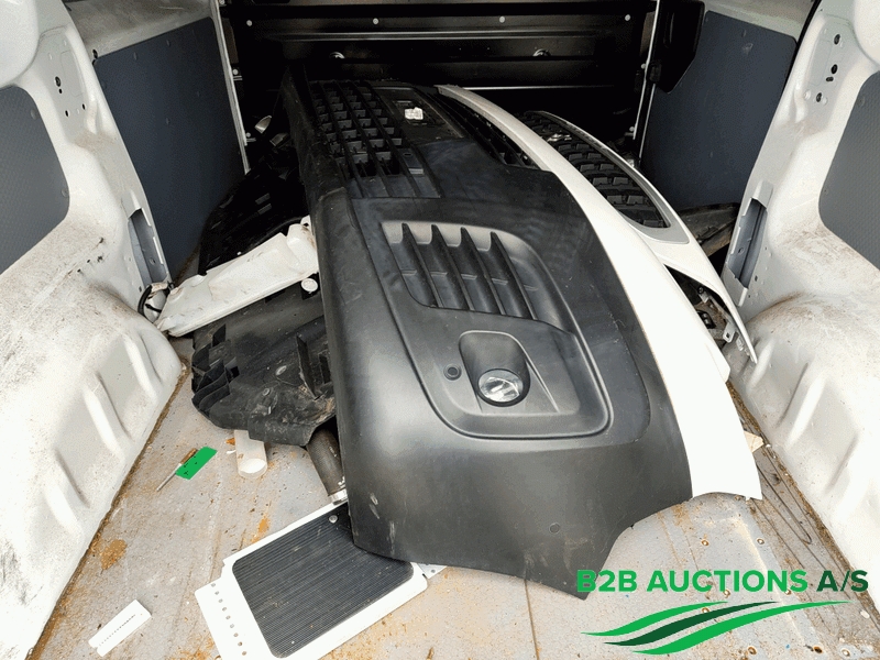 Køretøjet er trafikskadet, fronten af køretøjet er demonteret og ligger i lastrum.