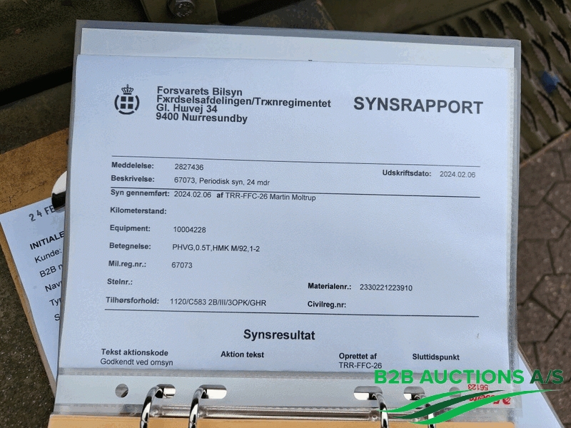Påhængsvognen sælges med frigørelsesattest fra Forsvarsministeriets Materiel- og Indkøbsstyrelse.
