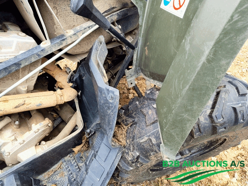Køretøjet har været startet, styretøjet og front er beskadiget, se foto.