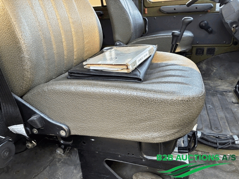 Køretøjet sælges kun med frigørelsesattest fra Forsvarsministeriets Materiel- og Indkøbsstyrelse, sælges uden registreringsattest.
