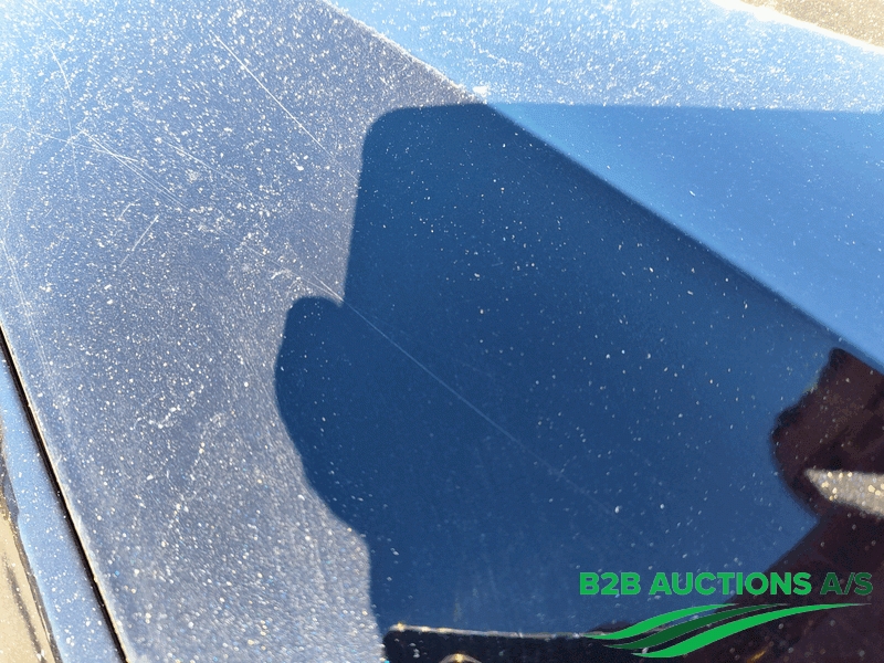 Ridser: A-stolper højre + venstre, kølerhjelmen, spejlkasser i begge sider, læssekanten ved bagklappen, bagskærmen i højre side og på vangen under førerdøren + begyndende rust.