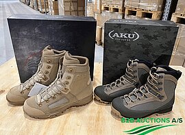 Ca. 104 par LOWA ELITE dessert støvler og ca. 43 par AKU TACTICAL PILIGRIM støvler – ubrugte